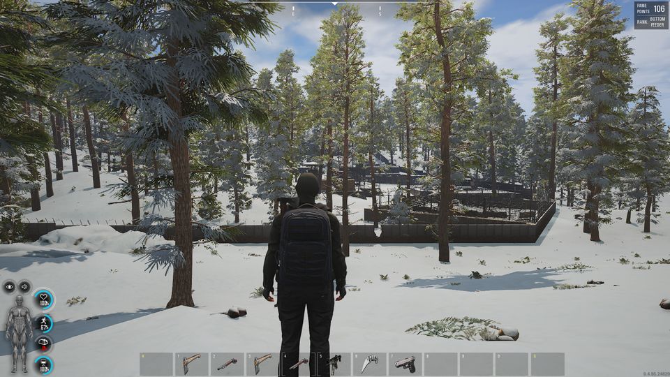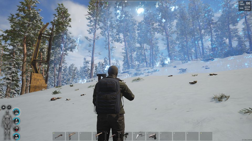 本作は他のハードコア・サバイバルと違い寒冷地での活動にそれほど厳しい制約がないため、今回のプレイではまず積雪地帯をぐるりと回るべく東へ向かっていたのだが、途中でゲーム開始時の初期位置付近にエアドロップが投下されたため、慌てて引き返す。
