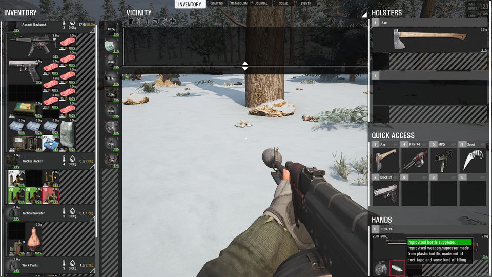 なおRPKに専用サプレッサーは存在しないが、なんと手製サプレッサーの装着が可能になっている。どちらかといえば聴覚障害を防ぐためのサウンドレベル低減が主眼になるが、とりあえず装着しておいて損はないだろう(小型火器の場合、サプレッサーに視界を遮られて狙いが非常につけにくくなるという欠点もあるが…)。