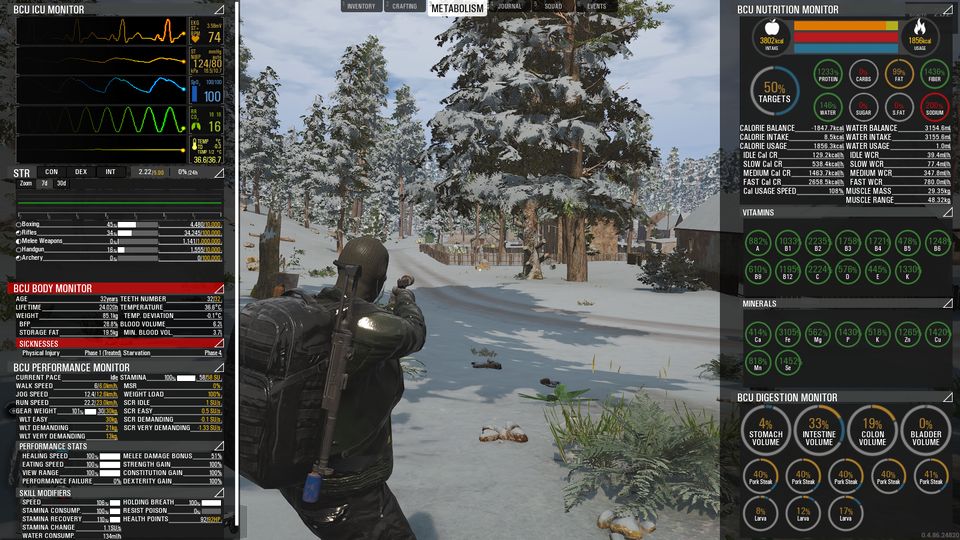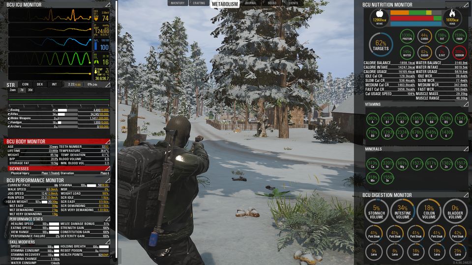 たしか前回あたり書いたと思うんですが、ビタミン欠乏症等の判定はこの24時間サイクルでの栄養減少時にカウントされます。なので塩分なんかは普段からこまめに摂取するより、24時間経過直前に醤油をグビッと一飲みするほうが対処が簡単なわけです。現在のこの仕様はどう考えてもゲーム的すぎるというか、イビツというか不自然なので、そのうちパッチで最適なバランスに解消してほしいとは思います。