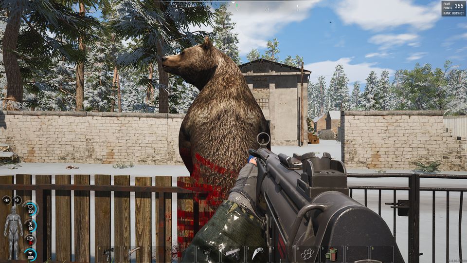 態勢を立て直しMP5で反撃するも、致命傷を負わせることができず逃げられてしまう。慎重に後を追うと、クマは出血多量でご臨終してしまったのであった…