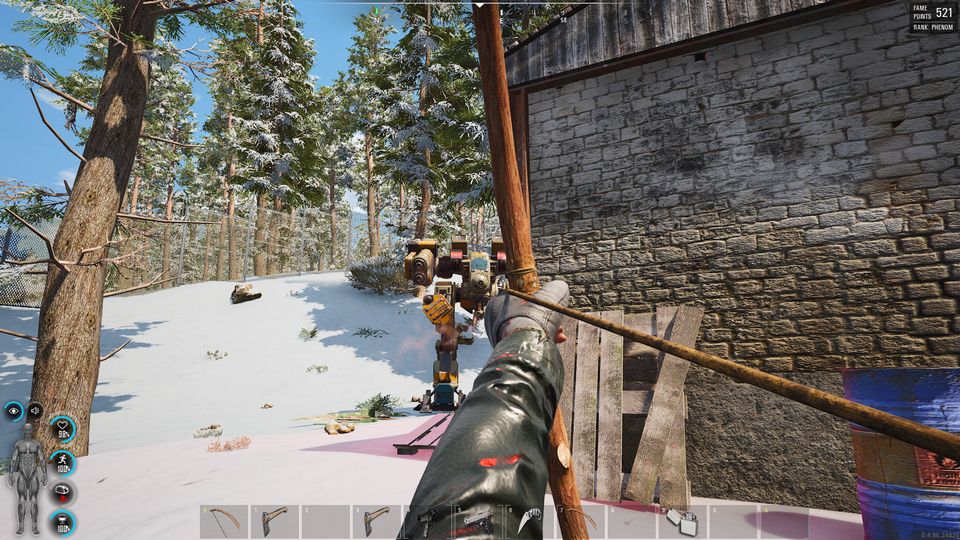 ガトリング砲の掃射から逃げつつ作った弓矢で応戦するものの、勝てる気がしないので、けっきょく撤退せざるを得なかった。