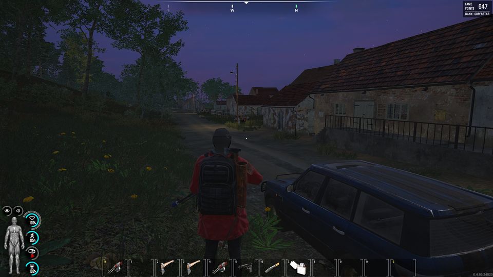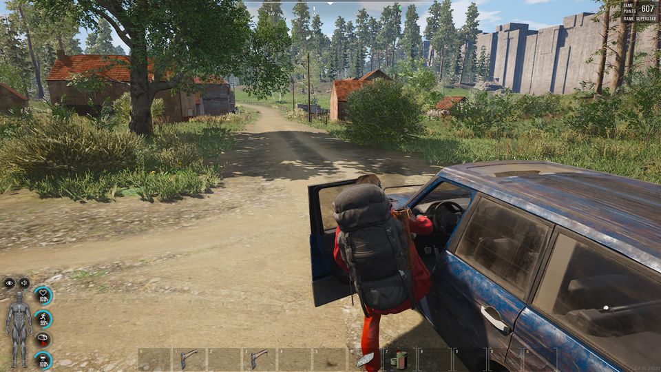 リスポーン直後にハイキングバックパックとオンボロSUVを発見、かなり幸先が良い。普段はあまりに便利ゆえ(あとTPS視点でプレイヤーの姿が隠れるのがイヤなので)ハイキングバックパックは使用を縛っていたのだが、このさいだ、背に腹は変えられねぇ。そのうち装備が整ったら手放すことにしよう。