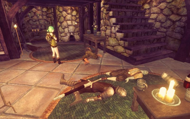 でーそのまま死体を残しておくと街の景観がかなりアレなことになるので、オーデンスのハゲ、汚職衛兵隊長オーリック、オルドス、そしてオルドスの家の前を見張っている衛兵(通常は不死属性ついてるのでコンソールからフラグ外してね)の死体を、いまは主人なきレヴァナ邸の中に放り込んでおいた。
