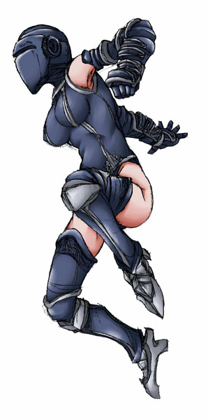 どっちかっていうと足技主体なんで、腕にはそれほどモリモリ筋肉がついてなかったりとか。そのかわり肩や背中が隆々としてる感じで一つ。全身を使って動くのを想定してるような。まぁそれでも、劇中でたまに心臓ぶち抜きとかパンチで鎧粉砕とかやってるんで、結局のところ「その場の雰囲気で適当に」っていうのが本音なんですけど。