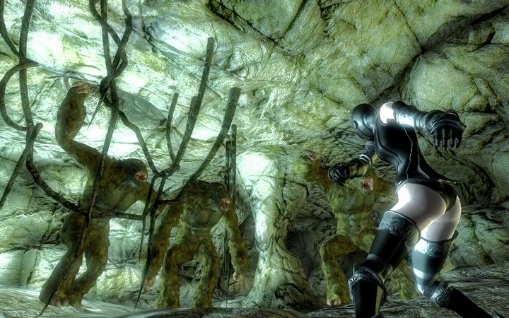 ちびのノルドは決心を固めたように身構えると、ドスドスと地鳴りを伴いながら突っ走ってくるナイトメア・トロールに向かって跳躍した。