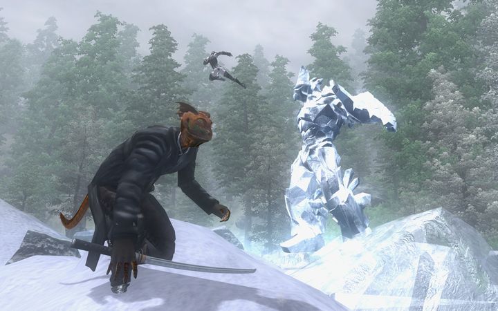 寒さに強いとはいえさすがに実力差があったのか、攻撃を避けきれなかったちびのノルドがグレイド・ウォーデンの一撃で吹っ飛ばされる。