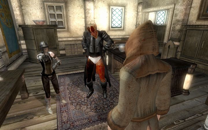 「(こ、こいつ恐ろしいヤツっ!まだ気づいてないのか、それとも羞恥心ってやつが一切ないのか?いくら俺がアルゴニアンだからって、どう反応すりゃあいいんだ…ケツが丸出しだぞって言うのか?)」