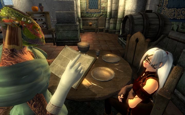 ム=ラージ=ダーが声を荒げたそのとき、2人の背後にアルゴニアンの女性が現れた。