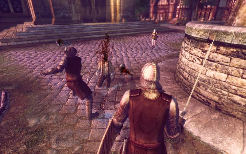 石畳の上に両膝をつくオルドス、オーリックはもはや無抵抗になった彼に向かって斧を振りかぶり…