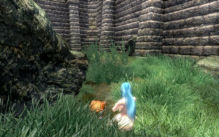 リア自身に羞恥の概念はないのだが、いざシェイディンハルに到着したときに全裸だと体裁が悪いし、予備のドレスも持っていなかったので、念のため人気のない岩陰で服を脱ぎ、トランクにしまいこむ。