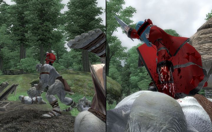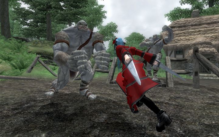 オーガが倒れる前にひらりと飛び降りたリアは、カタールの刃にこびりついた脳の欠片を振るい落とし、残る1体に向けて邪悪な笑みを浮かべる。