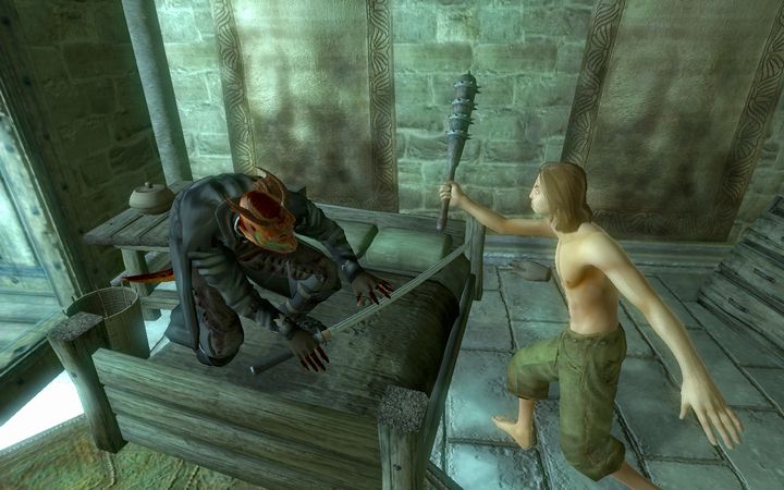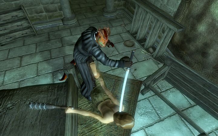 やがて、鉄格子の向こうに捕らえられたアルゴニアンの少女の姿を発見し、ドレイクは急いで駆けつける。