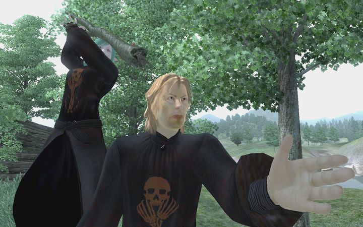 台詞とときの声が渾然一体となったわけのわからない叫び声を上げながら、ダンマーのネクロマンサーが襲いかかってきた。ミレニアは慌てて踵を返し、一目散にガン逃げを決める。