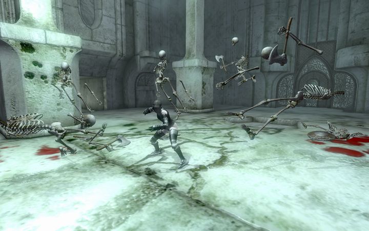 ちびのノルドは屈んだ姿勢から、素早い跳躍と同時にスケルトンの軍団を蹂躙していく。