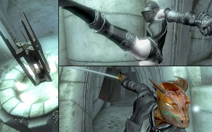 おまけに祭壇に続く通路にはアイレイドの仕掛け罠が作動しており、裂け目のように走った壁面の隙間から巨大な刃物が振り子のように揺れていた。迂闊に逃げようものなら、刃物に真っ二つにされかねない。