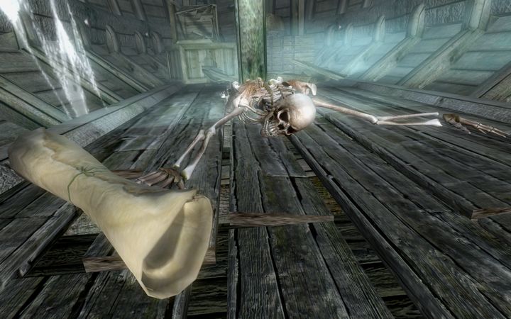 ちびのノルドは松明を相手に投げつけ、怯んだ隙にラグダンフ卿の剣を叩き込もうとする。しかし亡霊はエンチャントが付与された刃を掴んで止めると、もう一方の掌でちびのノルドの頭を掴み、強烈な思念を流し込んできた。