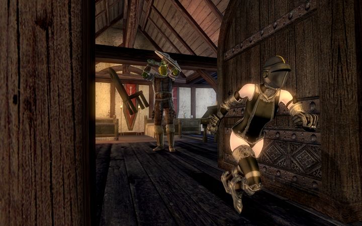 バーズの怒鳴り声が戦士ギルドの建物中に響き渡り、ちびのノルドは殴られるよりも先に執務室を飛び出していく。
