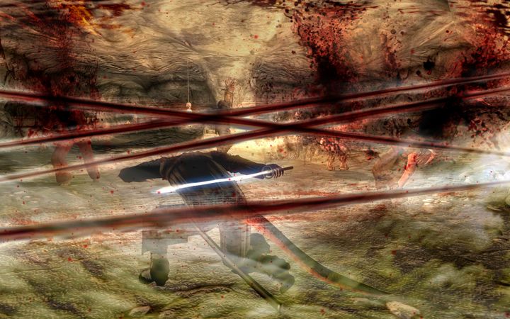 ドレイクが抜刀すると同時に凄まじい衝撃波が発生し、3人の部下達の上半身がいっせいに砕け散る。おびただしい量の鮮血が噴き出し、天井を紅く染め上げた。