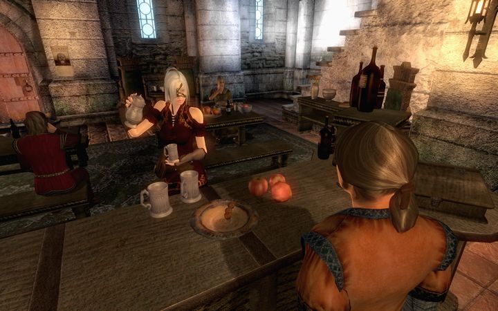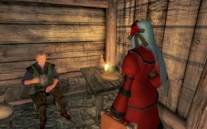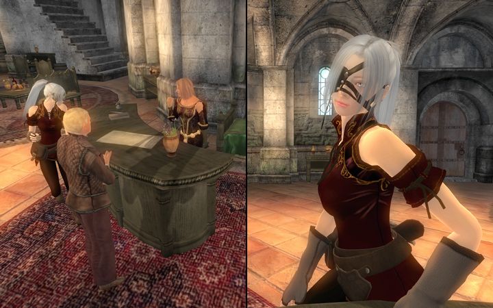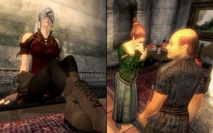 最初はドレイクと一緒に酒を飲んでいるショットを撮影したくて色々と試していたのだが、シロディールにワイングラスは死ぬほど似合わないことを確認。かといってジョッキやマグも貴族的なイメージには合わず、最終的に本を読んでいるという無難なポーズで落ち着くことに。