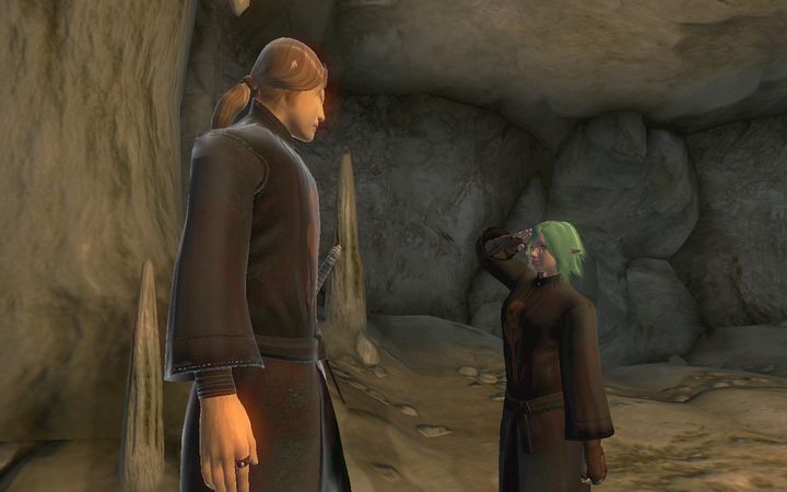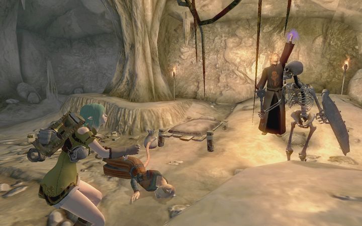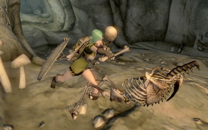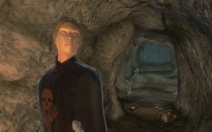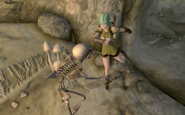洞窟に入ったときから地面に転がっていたカジートの死体を検分し、ミレニアは顔を引きつらせる。