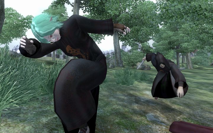 木の枝から手を離すと、ミレニアは漫談ネクロマンサーが手にしていた棍棒をもぎ取り、次の標的を探すべく森の中へと消えていった。