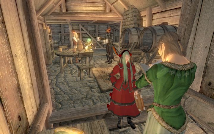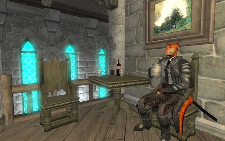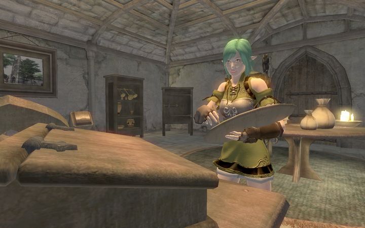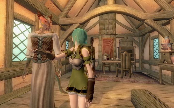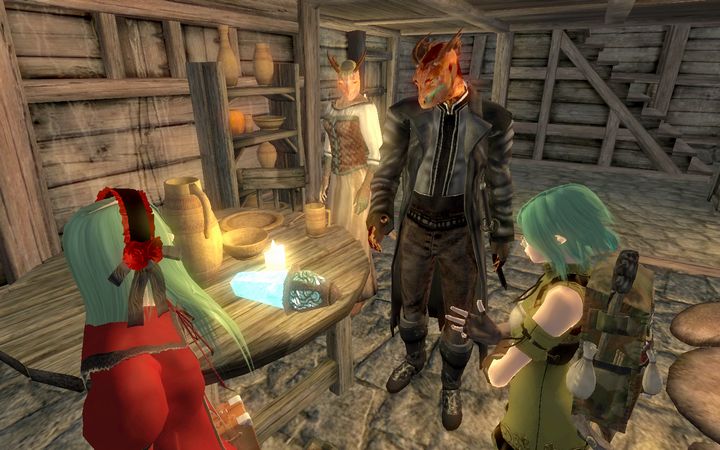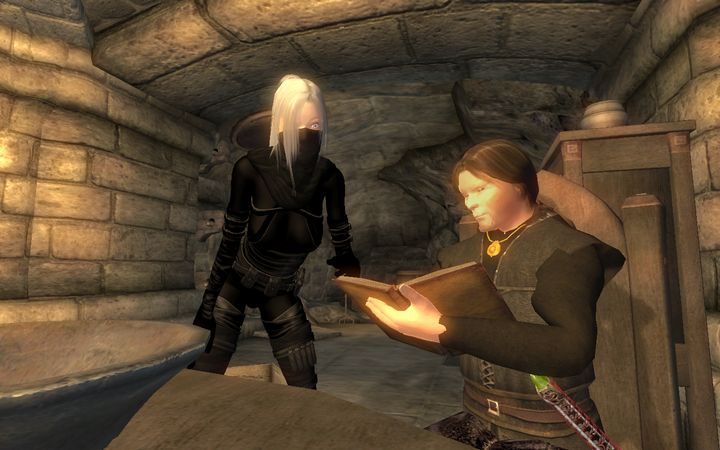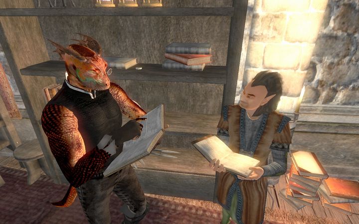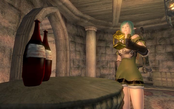 俺のせいじゃないのに…とひとりごちながら、ドレイクはさっさと扉を閉めて階段を下りていった。若干手狭な室内には魔術師が使うような実験器具が所狭しと並んでおり、あちこちに錬金術用の調合素材が積まれているなか、1人のアルトマー(ハイエルフ)がドレイクに笑顔を向けてきた。
