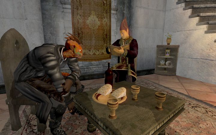 ユンバカノの言った「センセイ」とは、ドレイクの故郷ブラックマーシュに住むアルゴニアンの学者で、古今あらゆる学術知識に長けていることから、世界各国のギルドや学会と繋がりを持つ大物である。とはいっても当人自身はかなり質素な佇まいで、その穏やかで謙虚な物腰は好漢と呼ぶに相応しい。