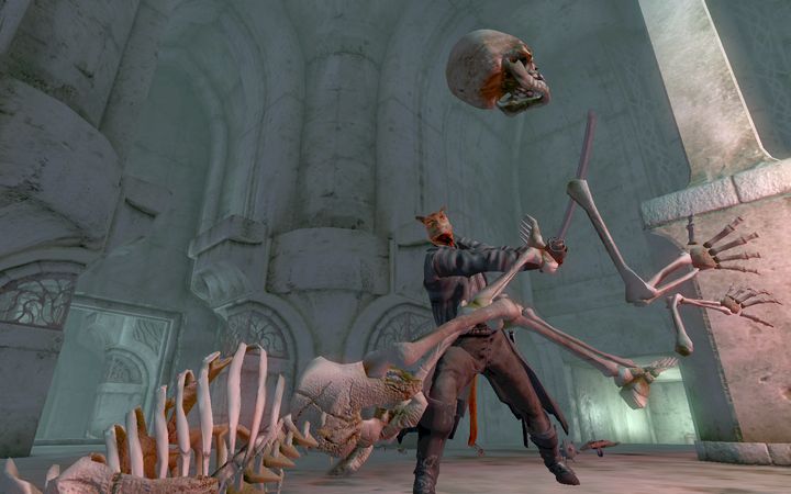 毒づきながらも1体、また1体とスケルトンの首を刎ね飛ばしていくドレイク。しかし、その表情に余裕はない。