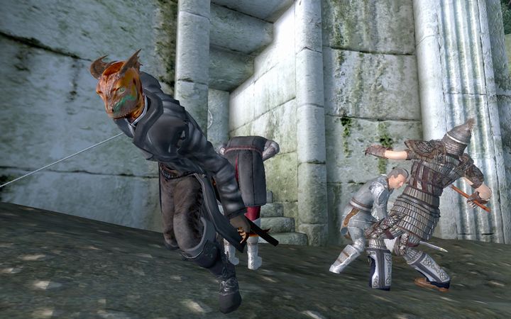 2人の傭兵の間を縫うように飛び出したドレイクは、カタナを抜きざまに、振り向きもせず背後にいる傭兵の身体に刃を突き刺した。