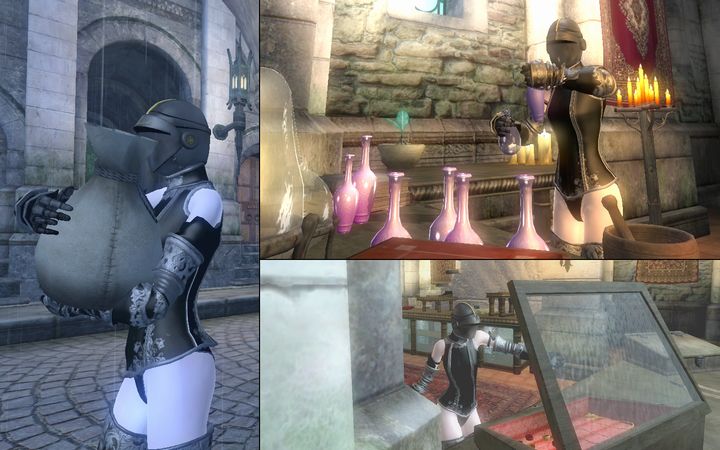 鍵のかかったチェストから、2本の瓶を取り出すちびのノルド。薄汚れ、傷つき剥がれかけたラベルから、かすかに「シャドウ・バニッシュ」の文字が読み取れた。