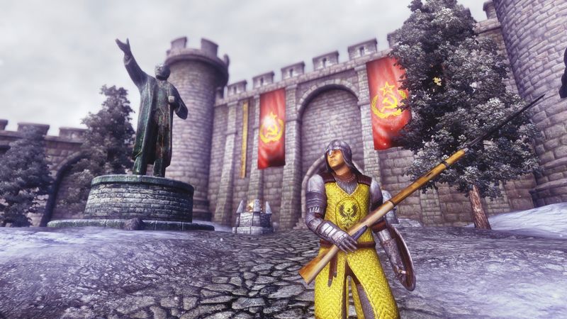 とりあえず前回レーニン像を追加したから、じゃあブルーマの旗もソ連の旗に変えて衛兵にモシンナガン(銃剣つき)を持たせようぜ。とか考えてたら上の画面写真の通りになりました。名づけてブルーマ赤色化計画。赤色化っていうかソ連じゃねーかっていうか近代化もしてる気がするけどまあいいや。