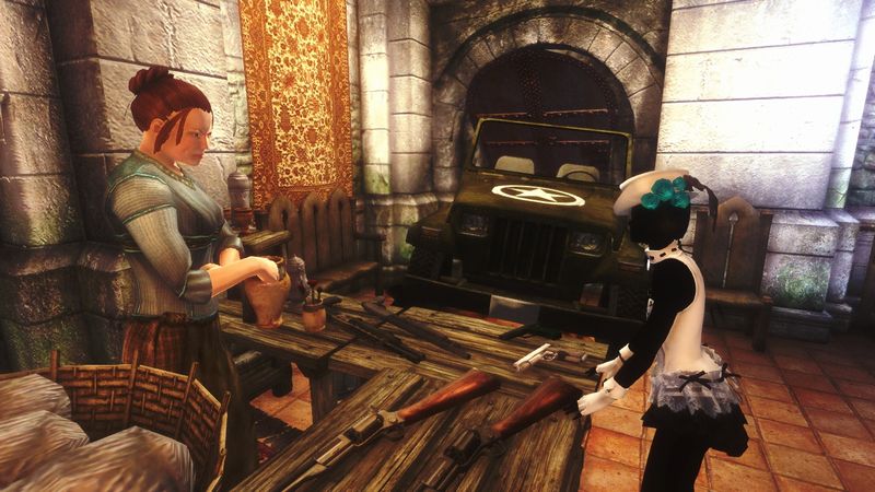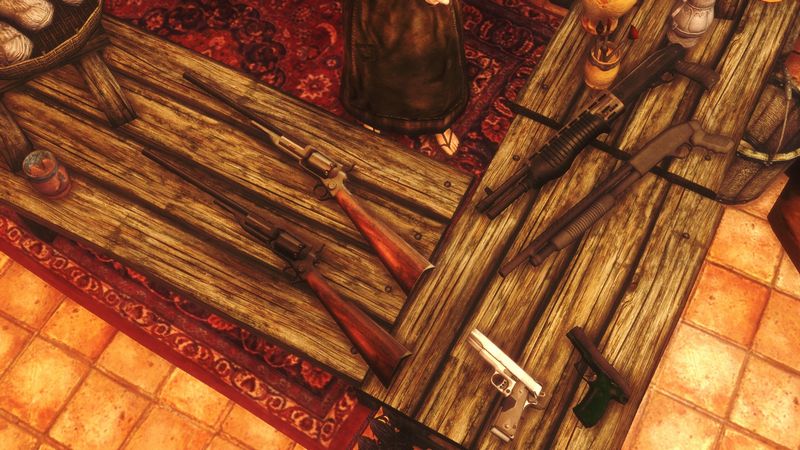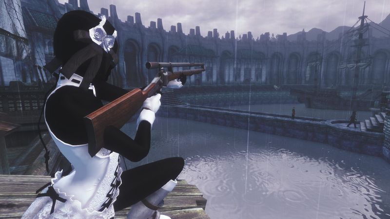 拳銃はMelee武器用のポーズでもそれなりにそれっぽく見えなくもないんですが、長物に関してはちゃんと「ライフルを扱っているポーズ」でないと見映えがしない(Skyrimではクロスボウがあるからまだ色々代用は利くんだが)ので、Gun Gimmick Poseというのを導入&改造して運用してみました。
