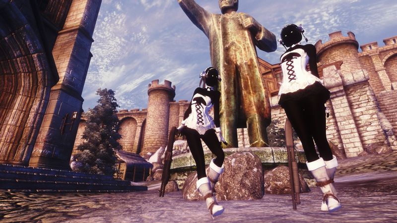 あとはちびのノルドの新バージョンを作る傍ら、現代的オブジェの素材を探すためひさしぶりにDuke Cityを訪れたりしてました。これは現代的な都市を追加するMODで、ワープゲート(見た目がもろスターゲイト)を通って別ロケーションに飛ぶタイプとなっています。