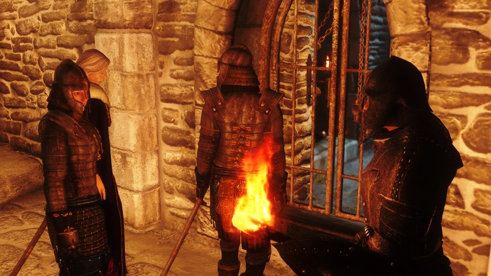 城の地下に存在する遺跡と、そこへ続く地下下水道で逃走中の皇帝一派と暗殺者グループが争う場面に出くわし、助太刀に加わった。奮闘も虚しく皇帝は暗殺者の手にかかり、皇帝からアミュレットを託された自分は、ブレイズの生き残りであるボーラスの助言に従ってこの修道院へ向かった…そのように説明した。
