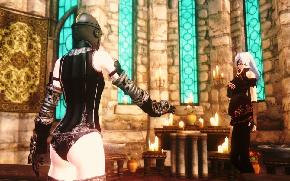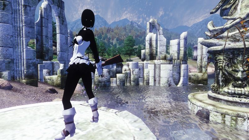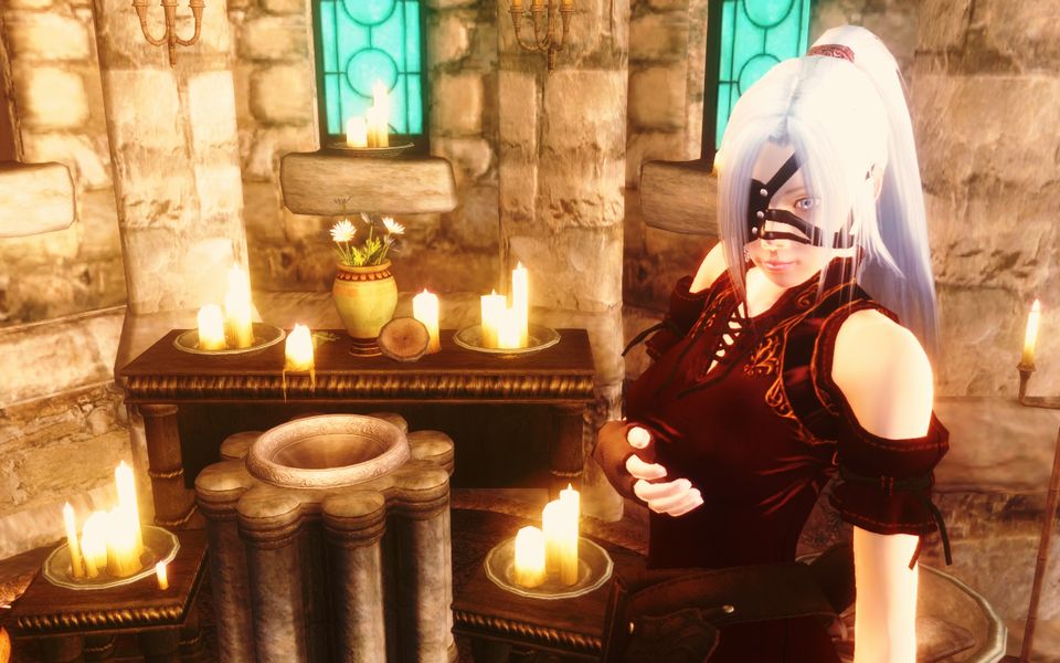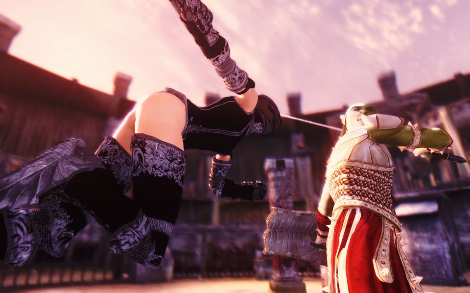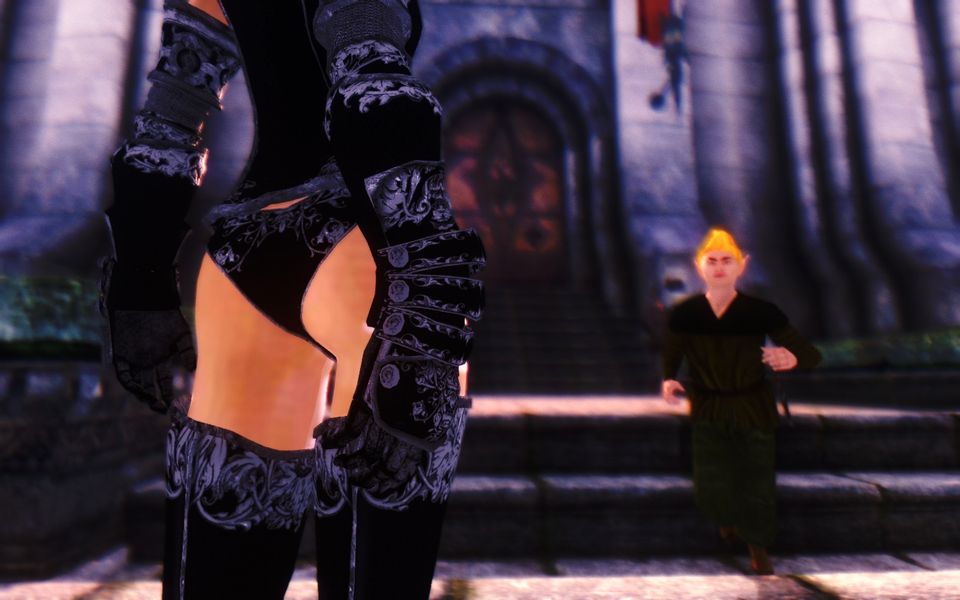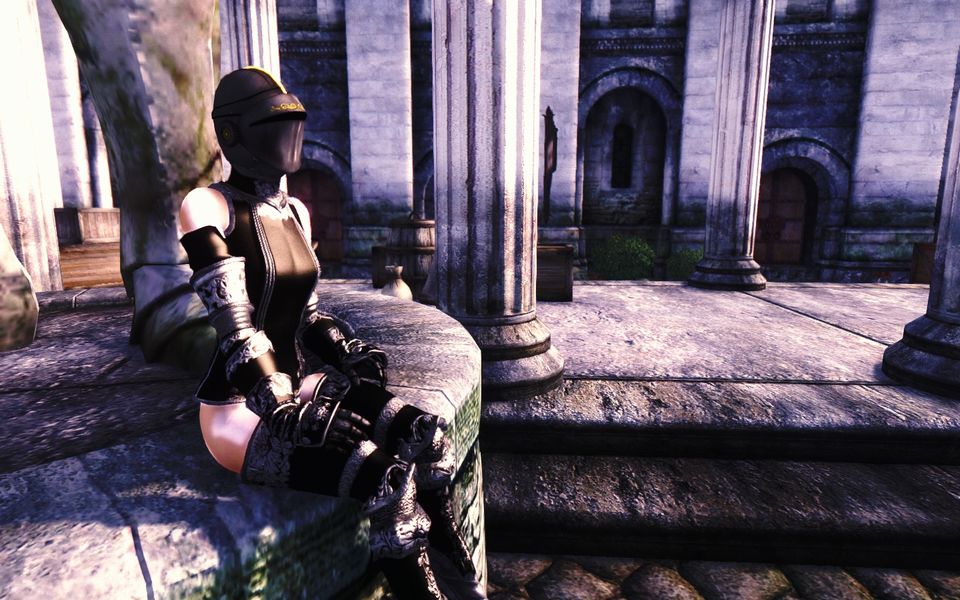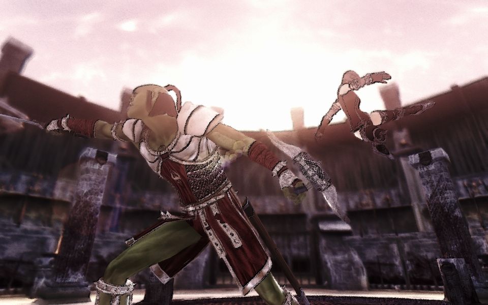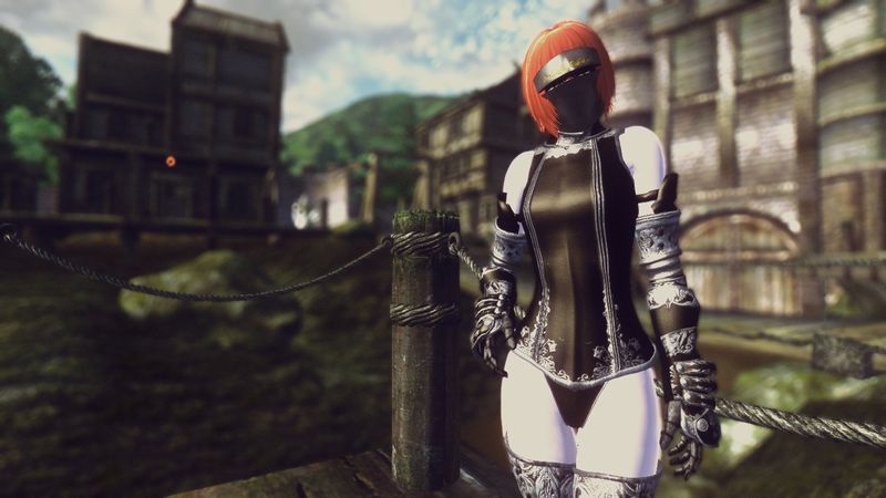 撮影用のモデルには、なんとなく思いつきで作ったWezaleffちゃん風のキャラを使っています。さすがにあのマニアックな体型までは再現できませんが。OblivionにElinのMODってあったっけ?