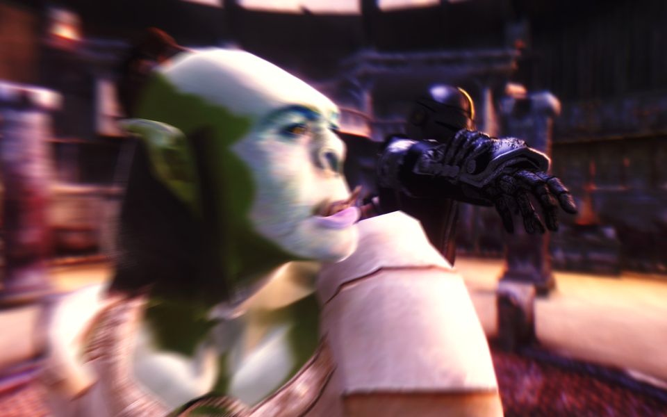 なんつーか、ウーン、普通に画面、汚くねぇか…?ダークファンタジー向けかねぇ。色彩鮮やかなシロディールにはちょっと合わん気もする。いや、個人の好みの問題ですが。
