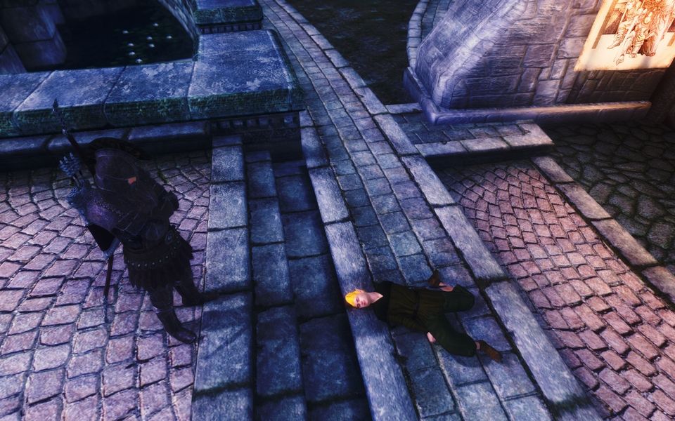 帝都へ向かう荷馬車の御者に多額のチップを渡し、かなり無茶な高速移動を強いて帝都に到着したちびのノルドは、間もなく日が暮れるというタイミングで闘技場へ戻り、その結果、剣豪オーウィンの激しい叱責を受けることになった。