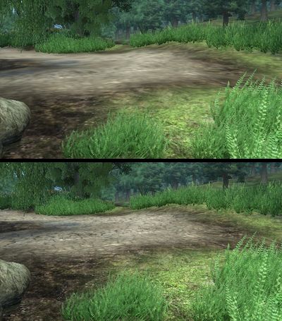 ただしENB環境下では本体のAnti Aliasingが強制的にオフになってしまうので、いささかジャギーが目立つ結果となってしまいます。とはいえオブリのAAは重いうえに効果がイマヒトツな古いタイプなので(オブリ用ENBのも。Fallout用はもっとマシになるんだが…)、負荷を嫌う人orAAかけるスペック的余裕なんかネーヨ!って人はENBを入れてエフェクトOFF&異方性フィルタリングONで運用するのが良いかと。