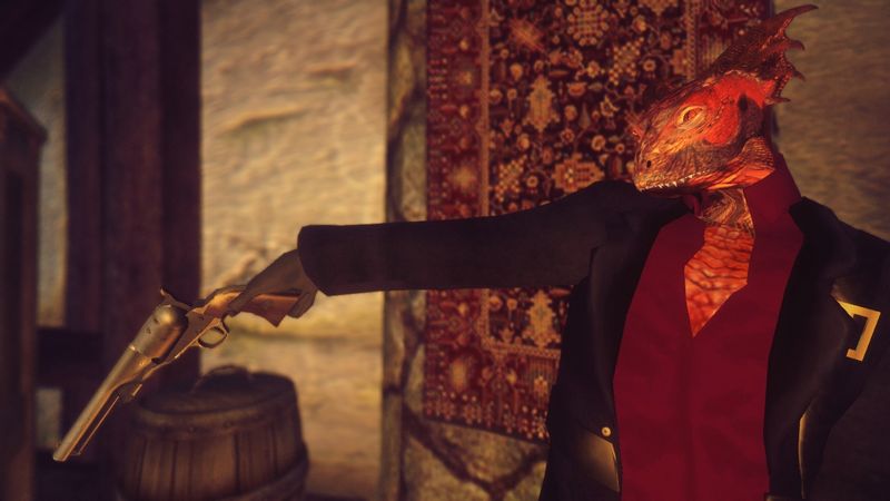 最初はアルゴニアンのガンマンを作る予定だったんですが、やっぱりどうせなら女の子のほうがいいよなあ…ということであえなく没に。