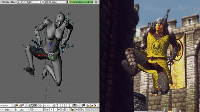 あとBlenderも導入したのでぼちぼちMeshをいじったりして楽しんでます。ちなみにSkyrim用に導入した2.75aではOblivion用に設定しても出力したNifがエラー吐いてどうにもならなかったので、オブリ用に2.49bを入れ直しました。今はNexusに必要なファイル一括したやつが置いてあんのね、俺以前導入したときは全部自分で探した記憶があるんだよなー。モーション作成補助用のボディメッシュとか既に落とせなくなってて途方に暮れた記憶あるもん。いや、便利になったもんです。