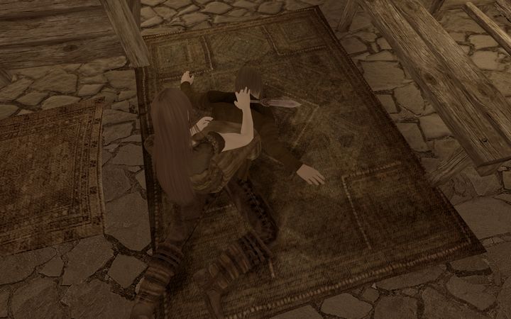 ちなみに、宿つきの酒場は昨日ちびのノルドが屈強な戦士たちを相手に大立ち回りを演じてから一切手がつけられていない。乱雑に散らかったままだった。