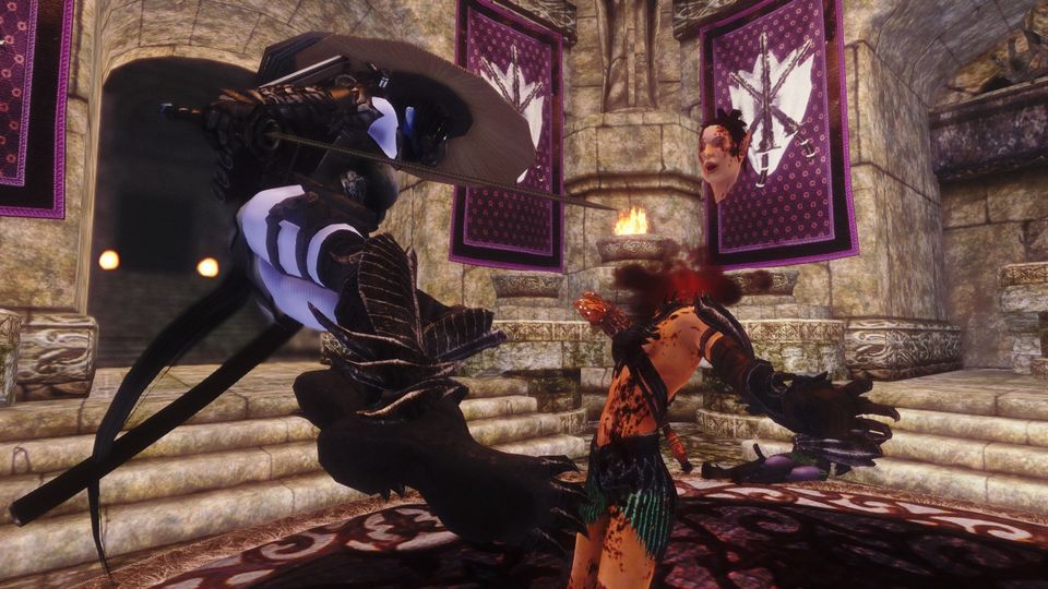 ついにシル女公爵と対面したジアン。三対一の戦闘はジアンの優勢で進み、先に護衛のダーク・セデューサー二人を始末したまでは良かったが、ただの臆病な陰気ババアと高を括っていたシルが意外にも強かった。普段の執政姿とは異なる、年甲斐もなく露出度の高い戦闘装備からも自信のほどが窺える。