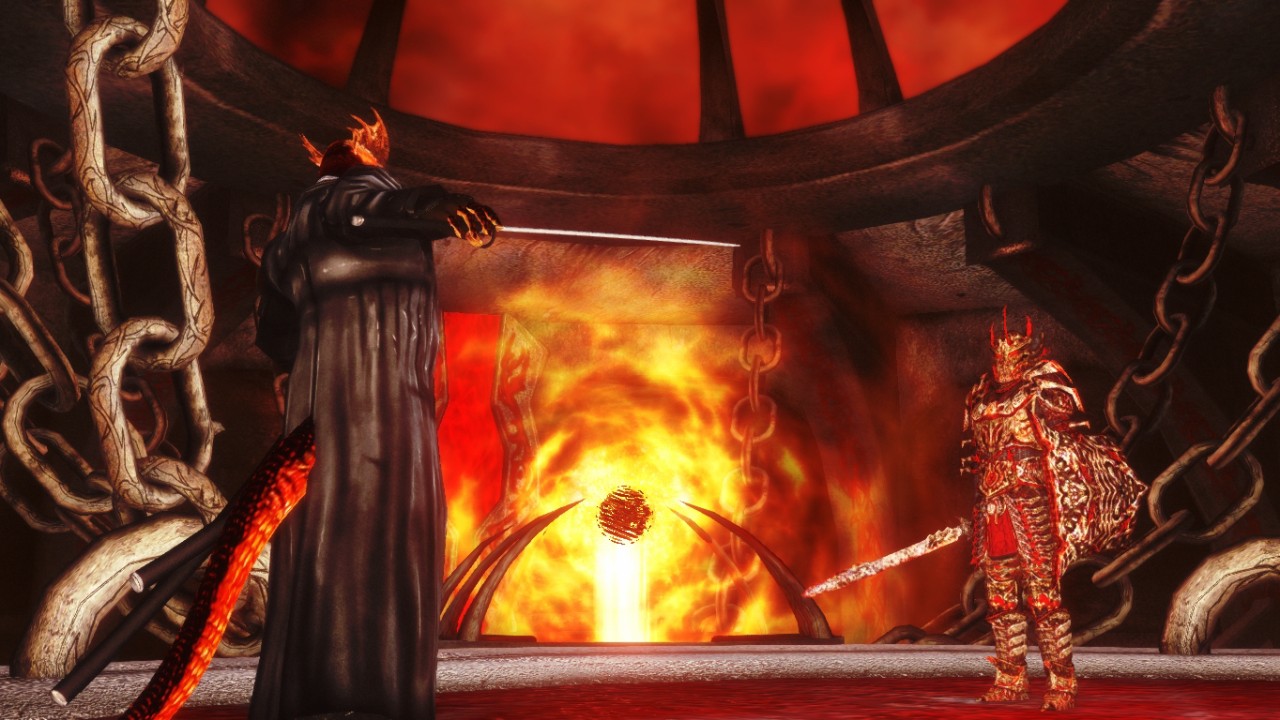 曇王の神殿へと戻ろうとした二人はブルーマにオブリビオンの門が開いているのを目撃します。ブルーマ軍と民兵による決死の防衛が行われているなか、マーティンは二人が持ち帰ったタイバー・セプティムの鎧を着用し、ブレイズを指揮して加勢に入ります。