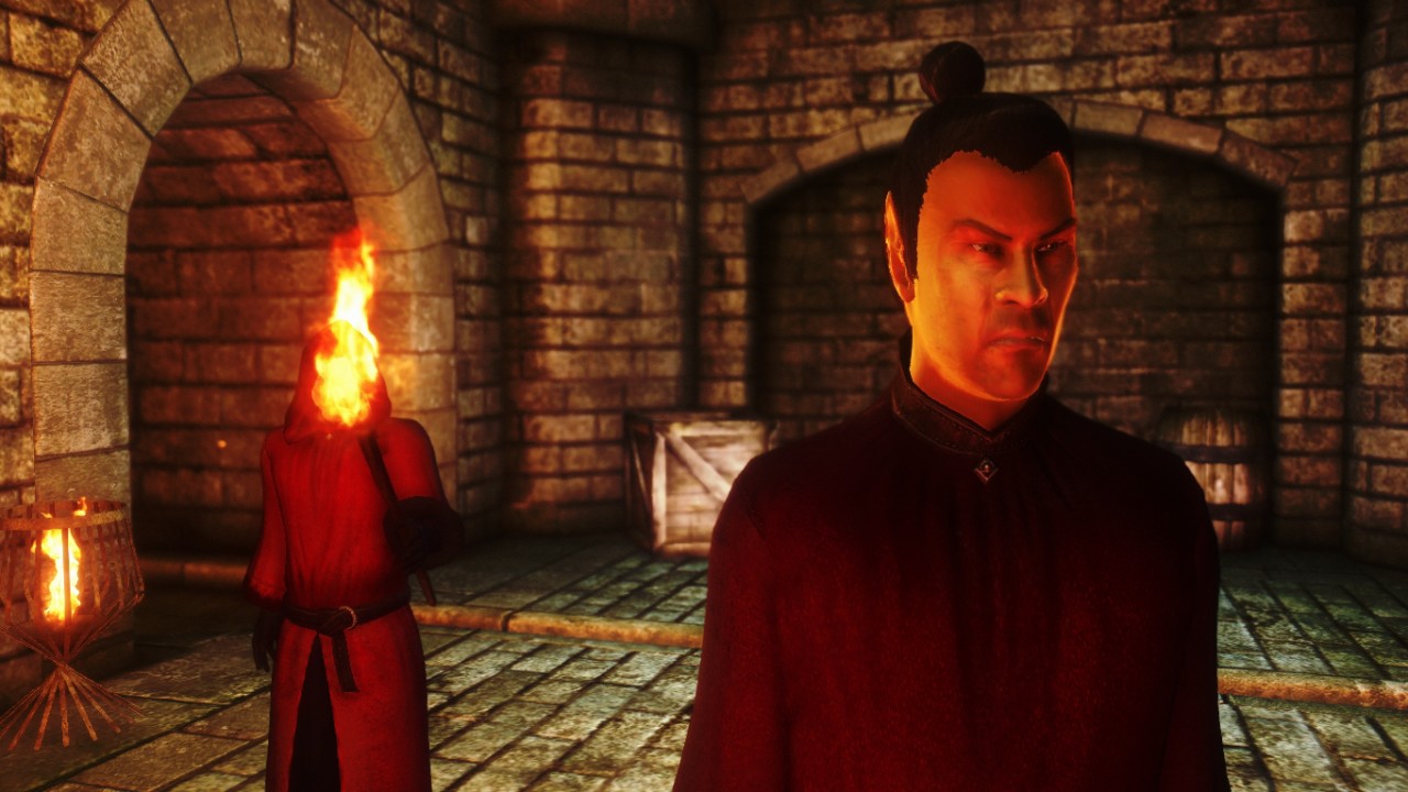 入信希望者を装い侵入に成功したアリシアは、祭壇に生け贄として捧げられているアルゴニアンを助けるため無謀にも攻撃をはじめてしまいます。影ながら様子を伺っていたエロールとドレイクも黙って見ているわけにはいかず戦闘に参加、マンカー・キャモランの娘ルマ・キャモラン率いる暁の信者たちを相手に大立ち回りを演じます。