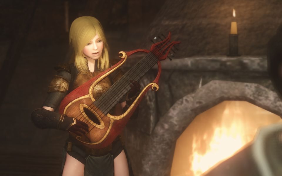 歌も上手いけど、どっちかで言えば戦場で剣振ってるほうが楽しい、そんなキャラ。ウィンドヘルムのキャンドルハース・ホールにて。