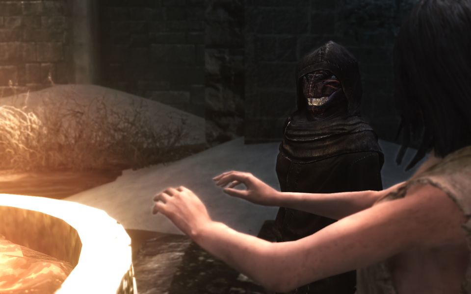 撮影に関しては当初、前作Oblivionを使うか、あるいはブラックマーシュを再現したMODを入れようかとも思ったのだが、けっきょくスカイリム領内ですべてを賄ってしまった。