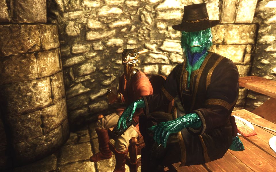 がしかし、個人的に今回の話は都会的な場所での活躍をイメージしており、またアルゴニアン報告におけるデクマス・スコッティの経験は「一個人が短時間で遭遇したブラックマーシュの極一部でしかない」という仮定のもと、あえて「沼地に囲まれた劣悪な環境で原住民のような暮らしを営むアルゴニアン」というイメージは避けた。