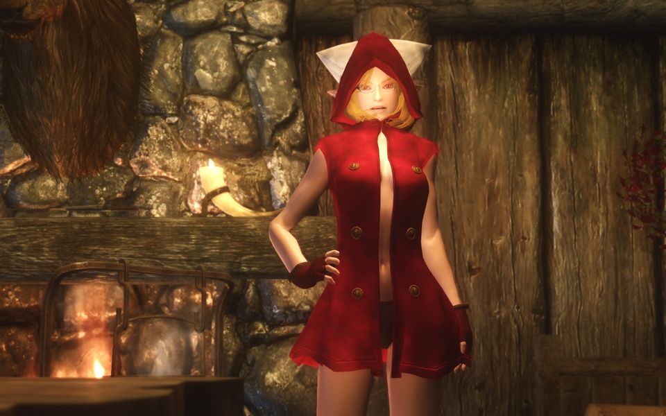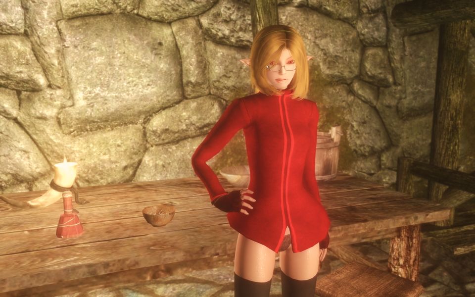 前が開いてるミニのローブとか超エロい!ということで当初は気に入ってたんですが、いざ実際に着用してみると思ってたよりエロくなかったっていうのと、やはりSkyrimの世界で着ているといろいろ違和感がすごくて世界観が台無しになる(もう片方のプライベート服も大概ですが…)ので、たぶんもう着用する機会はないと思います。