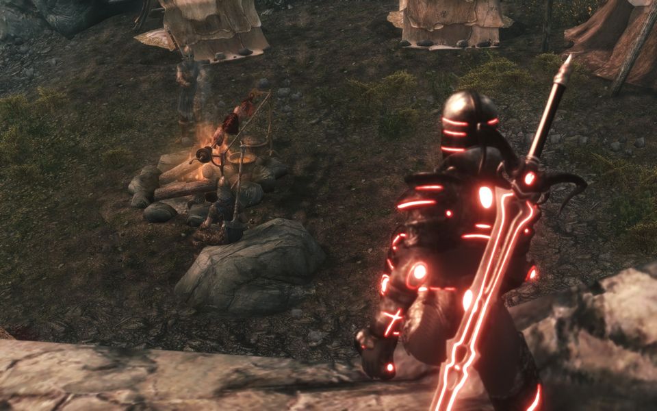 ストームクロークの野営地を発見、偵察…という体裁の写真。