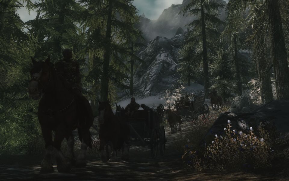 スカイリム南部、帝国軍の砦を擁する村ヘルゲンへと続く街道を行く馬車には重苦しい空気が漂っていた。